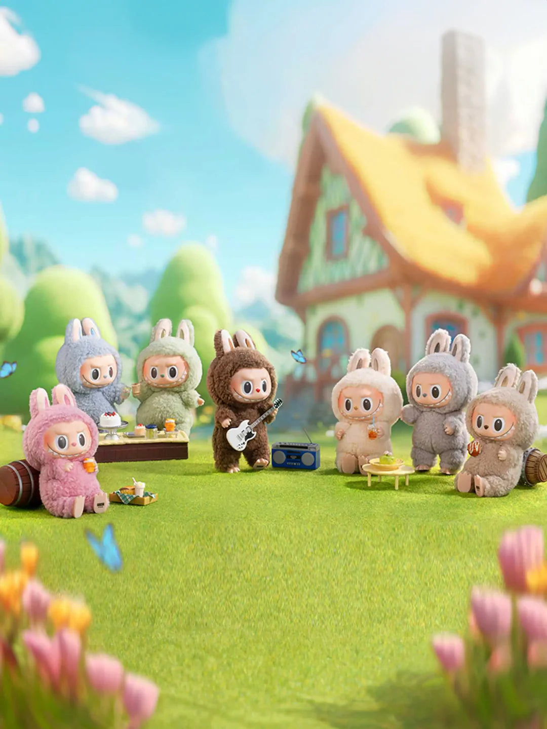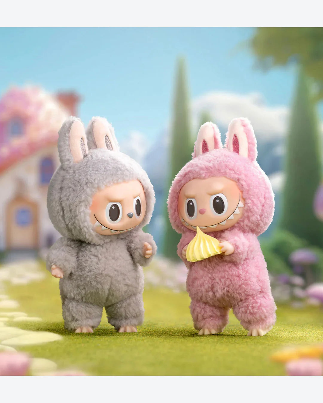 Ze zijn gekleed als melige macaronmonsters in speelse jumpsuits – met schattig scherpe tandjes en Labubu’s kenmerkende ondeugende glimlach .